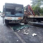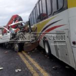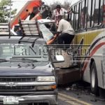 Los hechos se suscitaron alrededor de las 12:00 horas cuando sobre la antes mencionada carretera se desplazaba un autobús de la línea AU sin pasajeros el cual al llegar al kilómetro 45 chocó contra una camioneta y una plataforma.