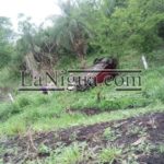 El conductor de la camioneta tras el impacto perdió el control de la unidad volcando de forma aparatosa hasta terminar entre la maleza con las llantas arriba.
