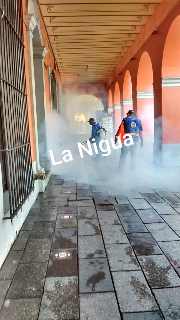 Tras el resguardo del paciente, personal del Ayuntamiento de Córdoba procedió a sanitizar el área a fin de evitar la propagación del virus entre los transeúntes.