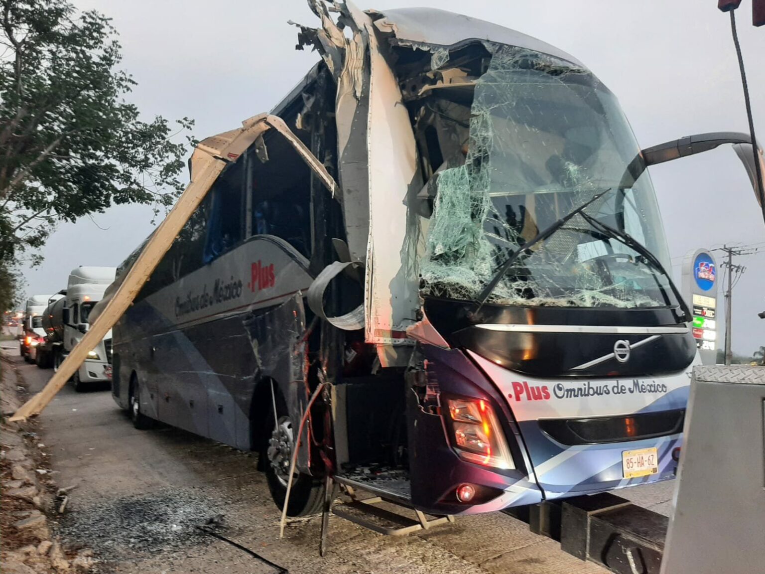 Un autobús de pasajeros de la empresa Ómnibus de México, con placas de circulación 85HA6Z del SPF, manejado por Arturo M.G. se impactó con un tráiler International, caja cerrada aparentemente vacía, matrícula 255429F del SPF, cuyo conductor, se retiró de la zona del percance.