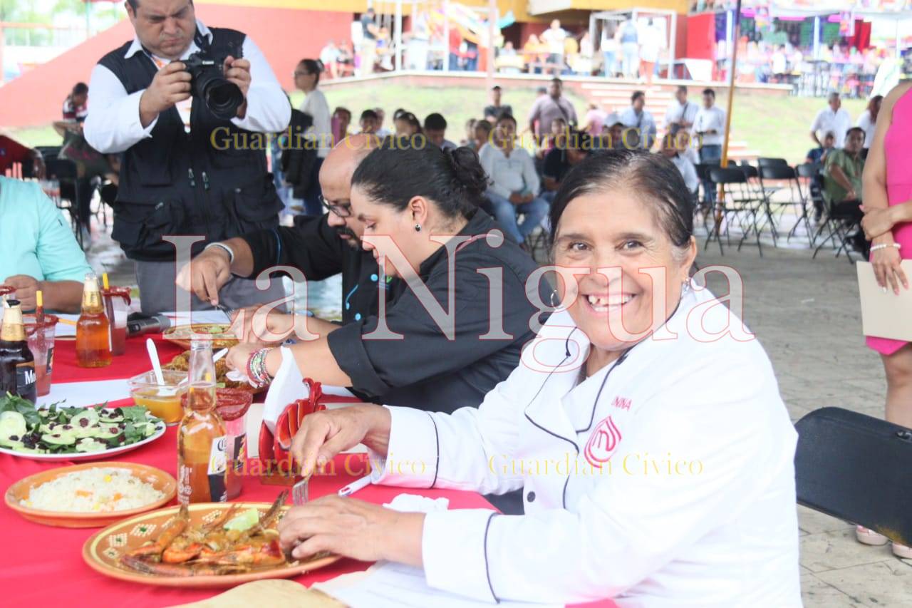 Alicia Molina, del restaurante Taurus, presentó su platillo “Langostinos al Tlatonile”; Langostinos Rolando, de Flavio Moreno, participó con ” Langostinos del Cielo”; Paty León y El Rinconcito presentaron el platillo “Langostinos en salsa de mango habanero; Los Chucumites de Benigno Pacheco, expusieron “Langostinos a la chicatana”; La Cabaña del Pescador, de José Luis Sarmiento, “Langostinos al pipián con epasote”, mientras que Rancho San Fermín, representado por Alex Ramírez presentó “Langostinos Adobados”.