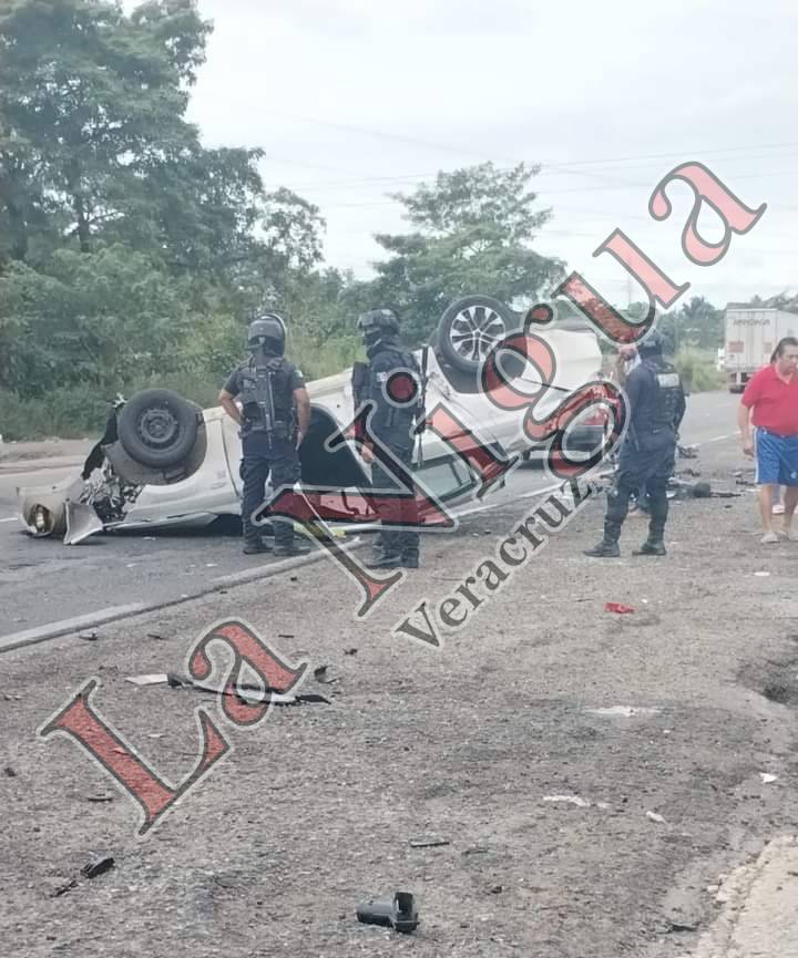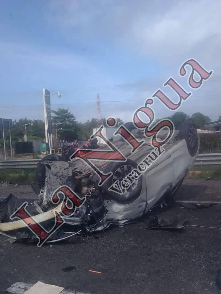Cosoleacaque, Ver.- Un automóvil color blanco volcó en la Carretera Cosoleacaque – Nuevo Teapa a la altura del barrio Veracruz del Municipio de Cosoleacaque.