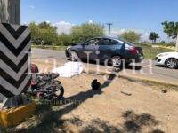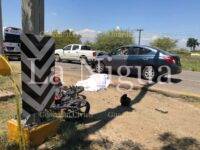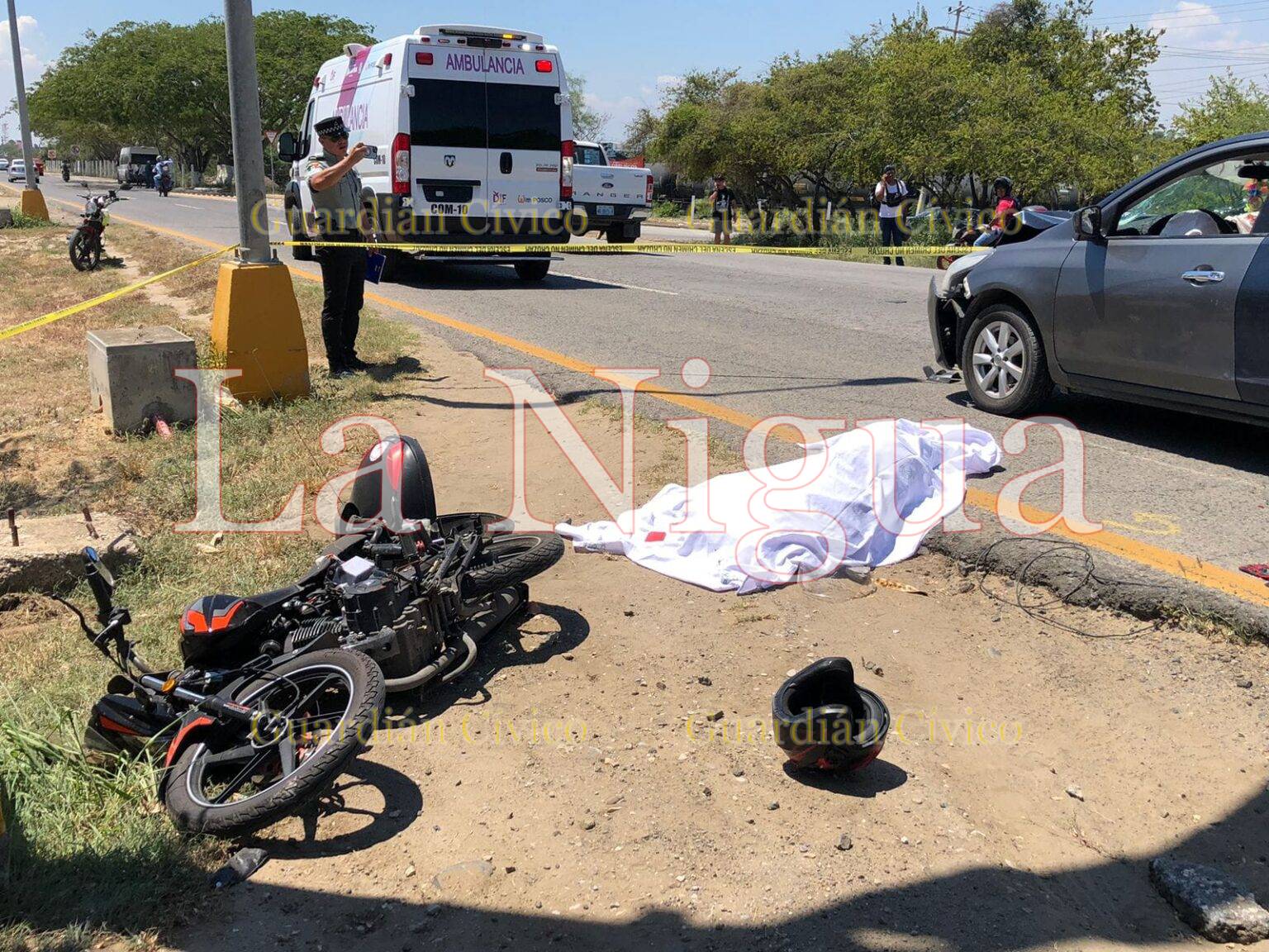 Presuntamente el motociclista intentaba cruzar la vía Federal cuando fue impactado por el automóvil Nissan Versa, golpeando su humanidad contra el parabrisas.