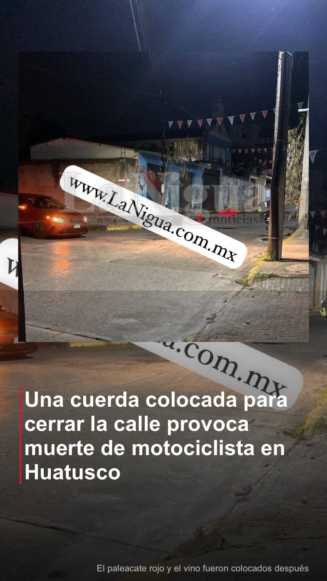 Huatusco, Ver.— Un joven motociclista perdió la vida la noche de este martes, luego de resultar gravemente lesionado al derrapar y chocar contra una cuerda colocada para cerrar una calle en el barrio de la Luz, presuntamente sin señalización preventiva.