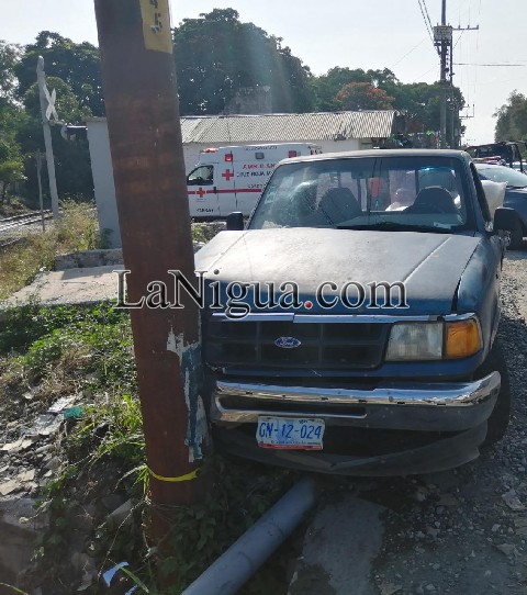 Córdoba. – Una camioneta Ford Ranger, terminó incrustada contra un poste, debido a que su conductor perdió el control cuando fueron impactados por un vehículo el cual se dio la fuga, sobre el bulevar Córdoba-Peñuela a la altura de las vías del ferrocarril, resultando una mujer lesionada al golpearse la cabeza con el parabrisas, siendo atendida por paramédicos de Cruz Roja mientras que al lugar arribaron oficiales de vialidad para tomar conocimiento y poder retirar la camioneta accidentada.