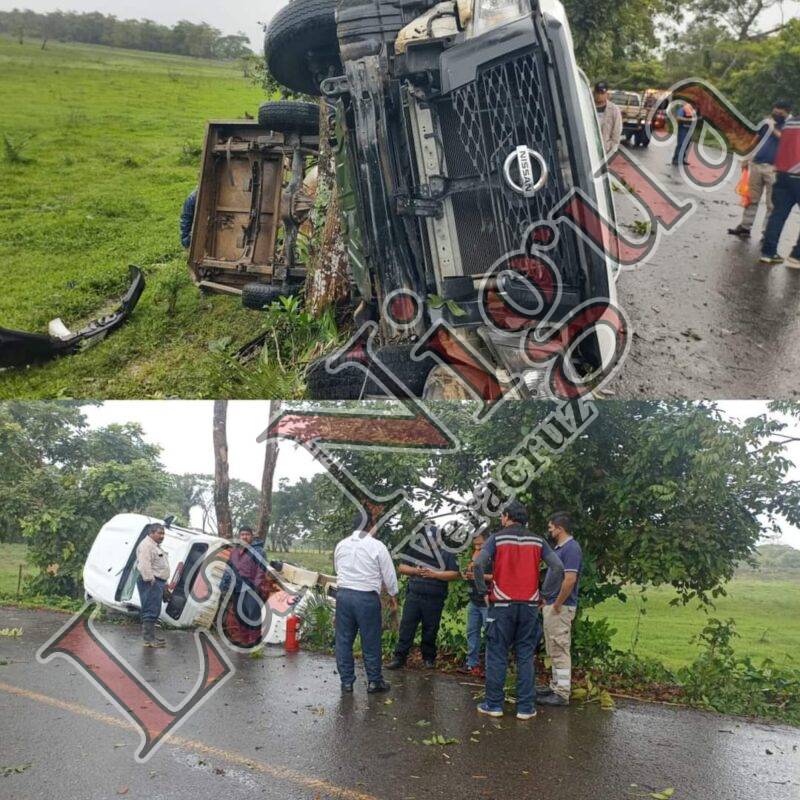 Alrededor de las 9:30 horas de este miércoles en la carretera al Francisco Rueda entre los límites de Tabasco y Veracruz, se registró un accidente que dejó como saldo daños materiales y el susto para el conductor y el copiloto de un camión propiedad de la empresa Petro Gas.