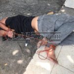 Para evitar que se escapara, los lugareños tomaron un mecate con el cual “lo amarraron como puerco” con las manos hacia la espalda, en tanto momentos más tarde se presentaron policías estatales.