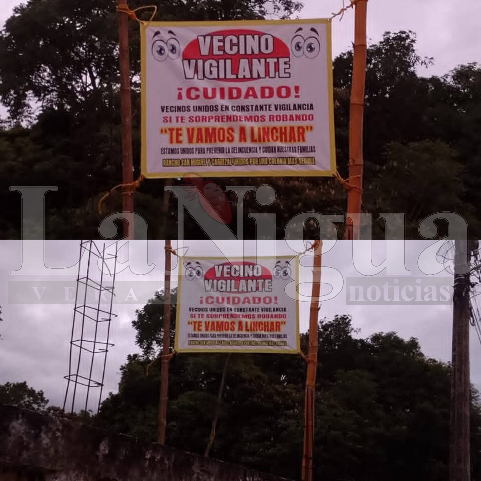 En sectores como Tepejilote, San Miguel y El Carrizal, los pobladores han colocado lonas y anuncios preventivos en los accesos principales, mediante los cuales advierten sobre su organización vecinal para vigilar sus calles y proteger a sus familias.