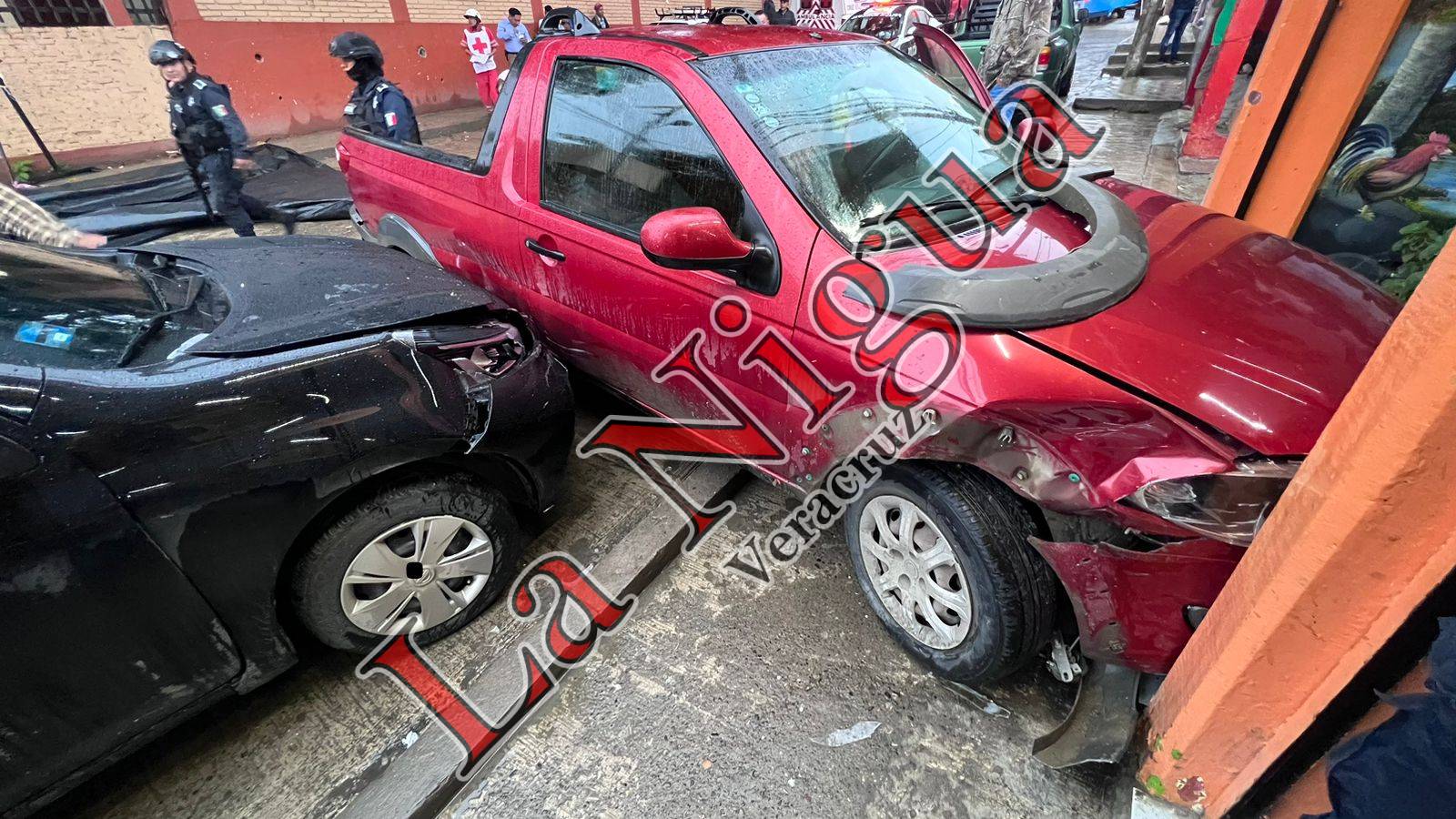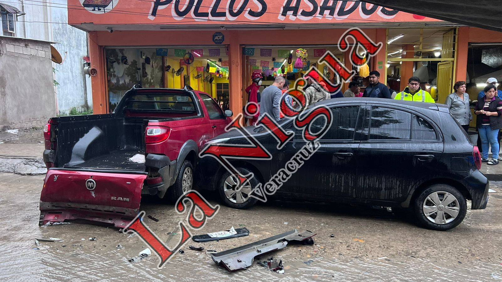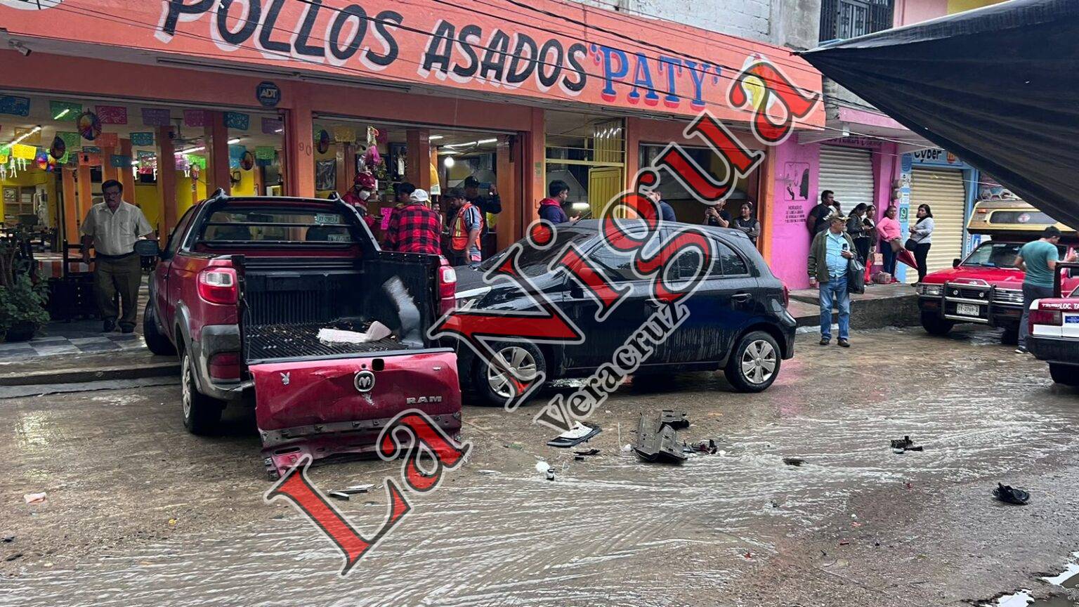Por el impacto, la camioneta RAM terminó impactándose contra un establecimiento de venta de pollos asados; al sitio arribaron Agentes de Tránsito Municipal quienes tomaron conocimiento del accidente.