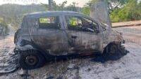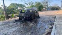 Un vehículo de alquiler con jurisdicción en esta ciudad terminó reducido a cenizas tras incendiarse la mañana del domingo en calles de la Colonia El Wash en esta ciudad.