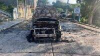 Vecinos indicaron que un posible corto circuito provocó el incendio que en cuestión de minutos consumió el vehículo en su totalidad.
