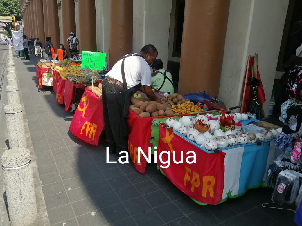 Xalapa, Ver.- Vendedores ambulantes de las organizaciones del frente popular revolucionario ( FPR) y movíento de independiente de lucha emergencia social ( MILES), se manifestaron en la banqueta de palacio de gobierno, así como también instalaron una cuerda sobre los arcos de este palacio de gobierno para que no pase la gente, pedir una audiencia con el gobernador de Veracruz Cuitláhuac García Jiménez, así lo manifestó el líder Magno Méndez Gallardo.Pará exigir que los deje seguir trabajando en las diferentes calles de esta ciudad de Xalapa, debido a que no han tenido trabajo y las ventas han ido a la baja, por lo tanto, estos vendedores ambulantes se pusieron a vender su mercancía de frutas y verduras, así también en la plaza Lerdo se situaron los los marimberos ya que no obtuvieron una respuesta a su petición desde la mañana que piden al gobierno del Estado que les ayude por la contingencia de la pandemia Coronavirus Covid-19.