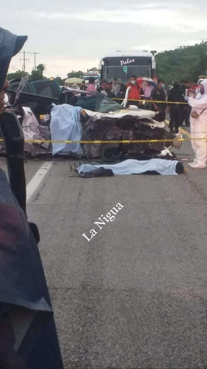 Los hechos se suscitaron alrededor de las 6: 35 horas, cuando un vehículo particular Sedan, color blanco se impactó contra la parte trasera de un camión que transportaba troncos de madera, por lo que el conductor del pesado camión perdió el control invadiendo el carril contrario, provocando que una camioneta tipo Nissan, color verde chocara de frente.Desafortunadamente el saldo preliminar es de 9 personas sin vida; 3 mujeres, 6 hombres, y tres heridos.