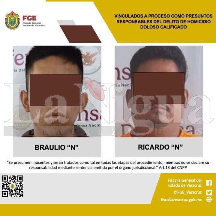 Jalacingo, Ver.– La Fiscalía Regional con sede en Xalapa logró que un juez de control dictara vinculación a proceso en contra de Braulio “N” y Ricardo “N”, quienes son señalados como probables responsables del delito de homicidio doloso calificado en agravio de un hombre identificado con las iniciales B.M.A.