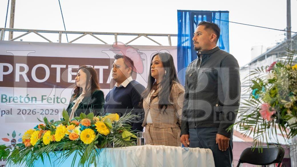Bretón Feito ante las autoridades y representantes de comunidades, se comprometió a desempeñar su función con responsabilidad, legalidad y apego a los principios de servicio público, en beneficio de las y los habitantes del municipio, reiterando su compromiso de gobernar con cercanía, transparencia y responsabilidad.