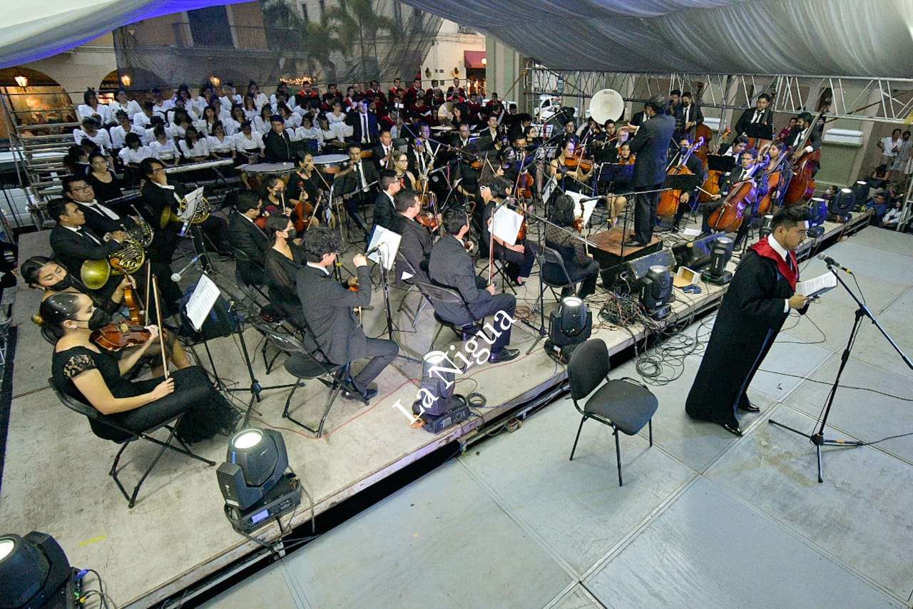 Córdoba, Ver., (24 de agosto de 2022).- En el marco de la conmemoración de los 201 años de los Tratados de Córdoba, las y los cordobeses disfrutaron de la obertura creada especialmente por la fecha significativa, obsequio del maestro, Carlos Guridi Canizales. Además del concierto de la cantata escénica «Carmina Burana» que se presentó en la explanada del parque 21 de Mayo, bajo la dirección del maestro Daniel García Vázquez y Omar Hernández Márquez.