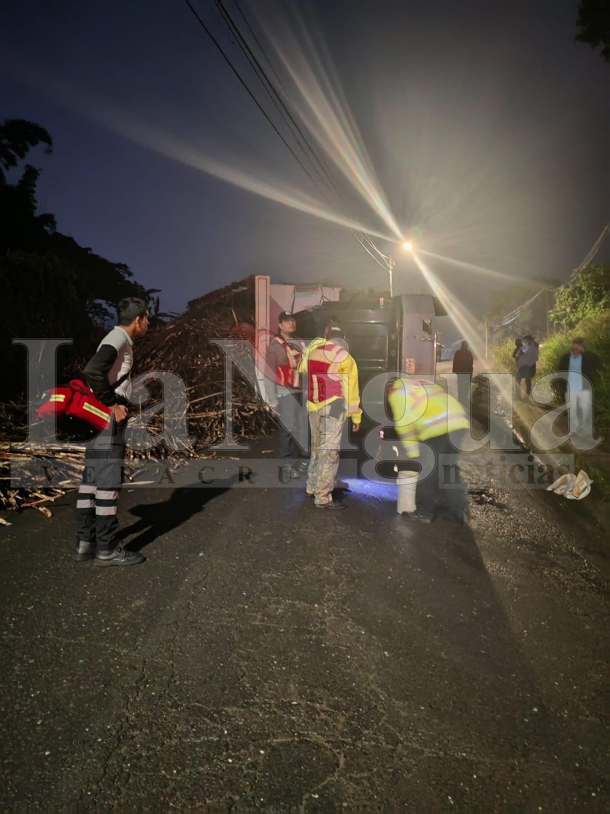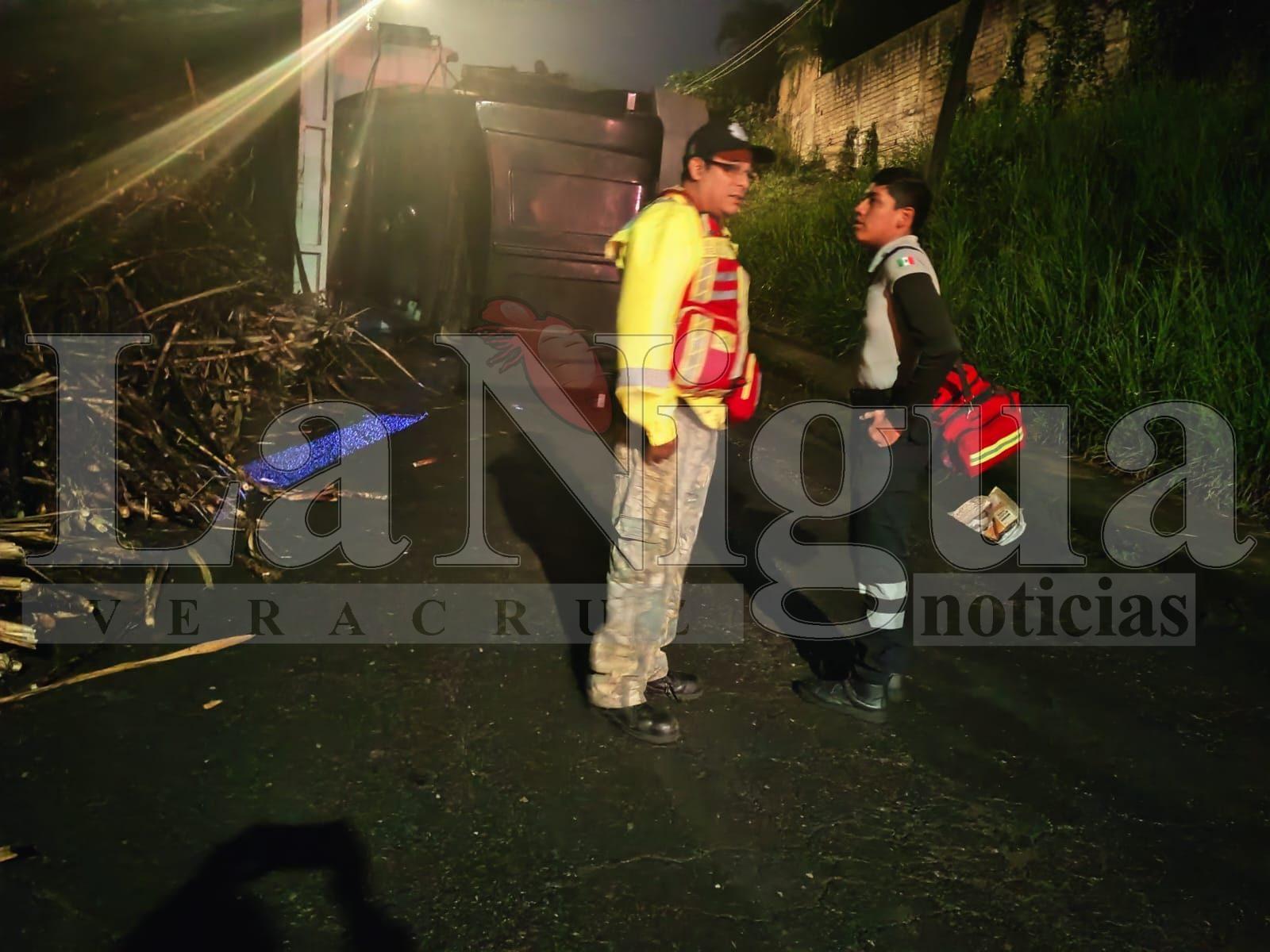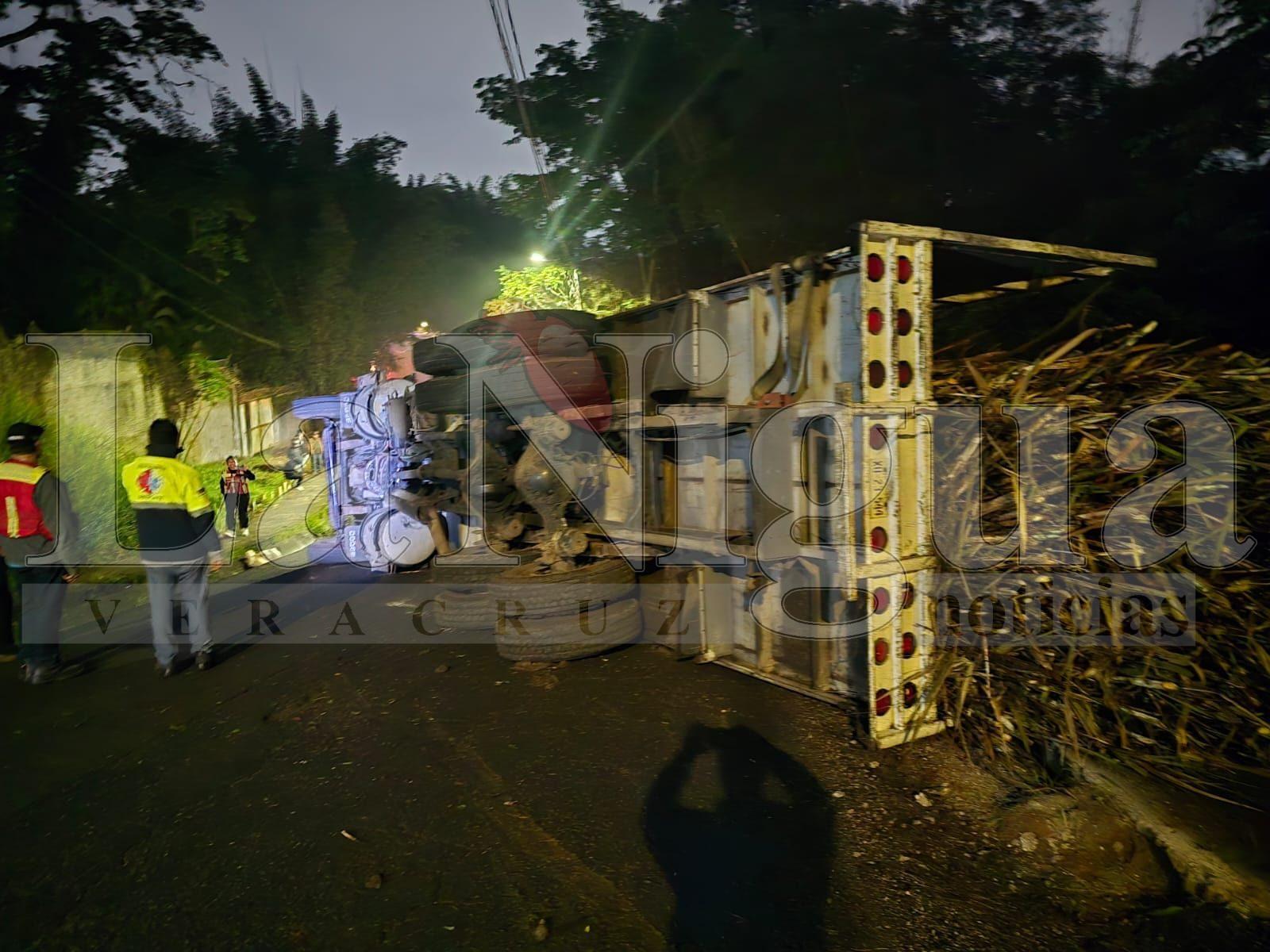 Córdoba, Ver.— La tarde de este día se registró la volcadura de un camión cañero sobre la Calzada El Barrial, a la altura del CECADIS, lo que dejó como saldo una persona lesionada.
