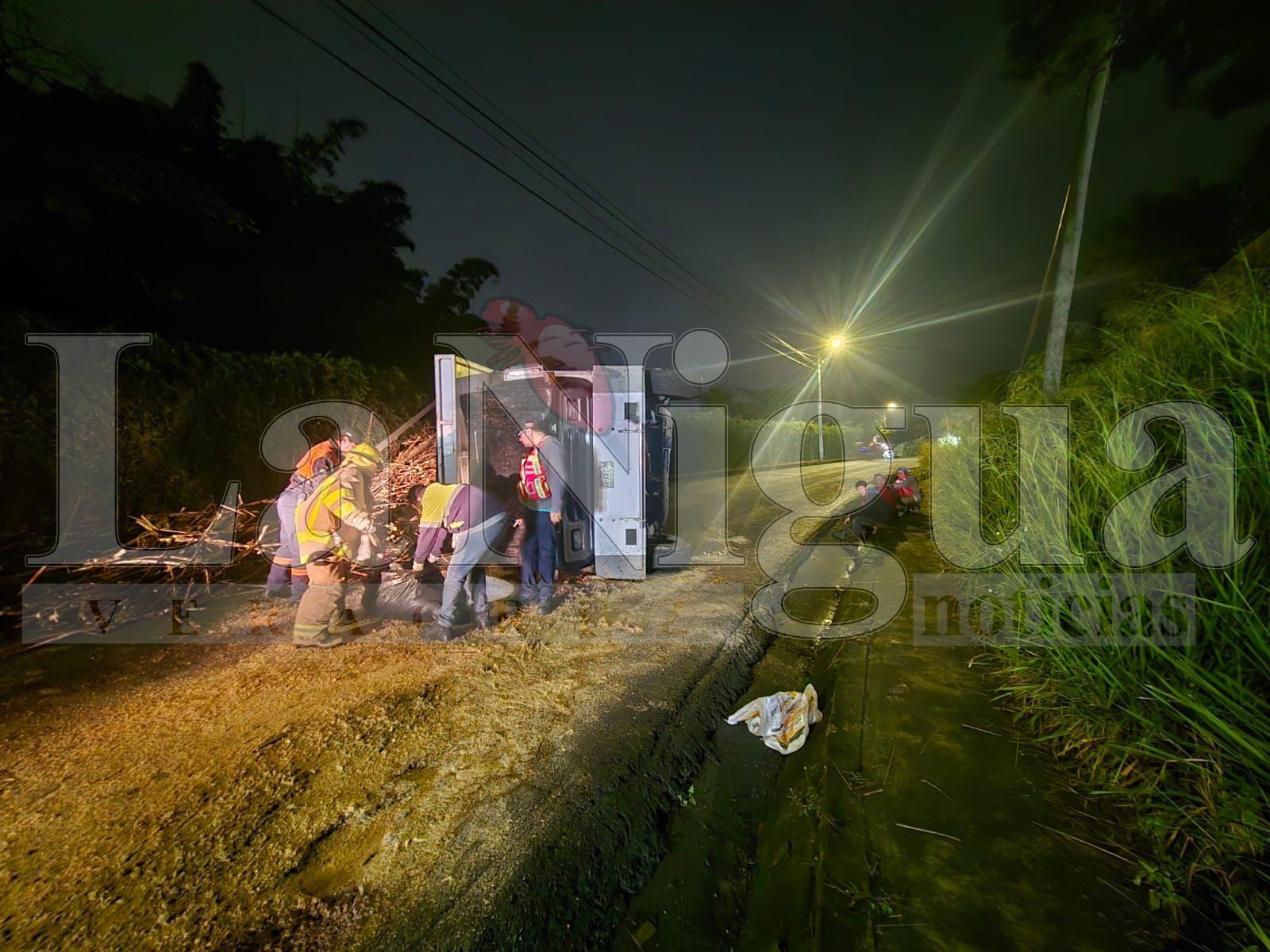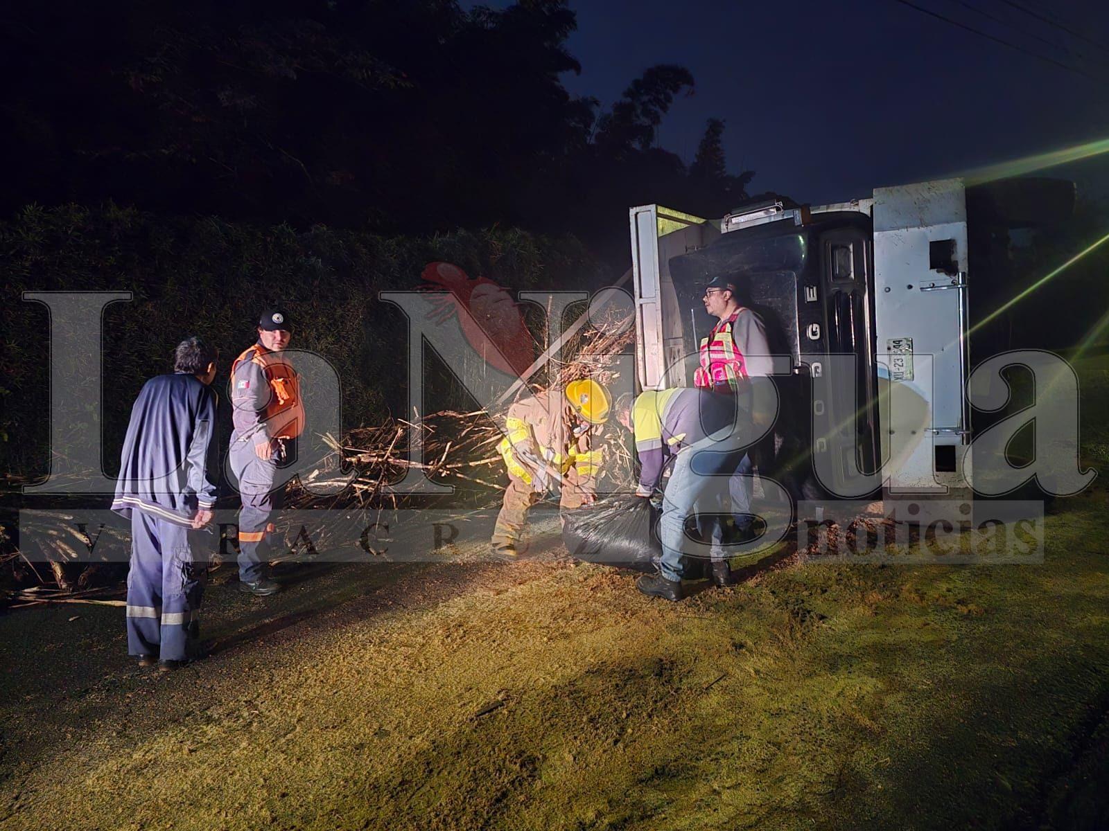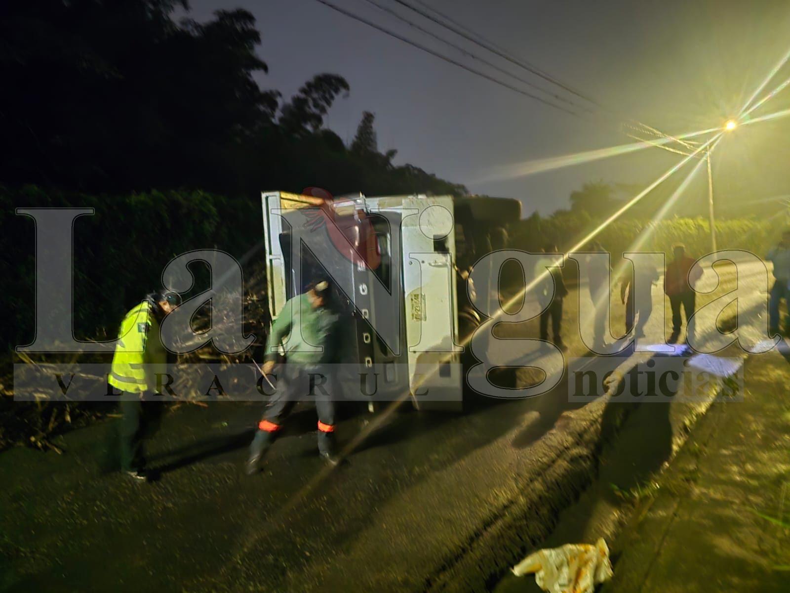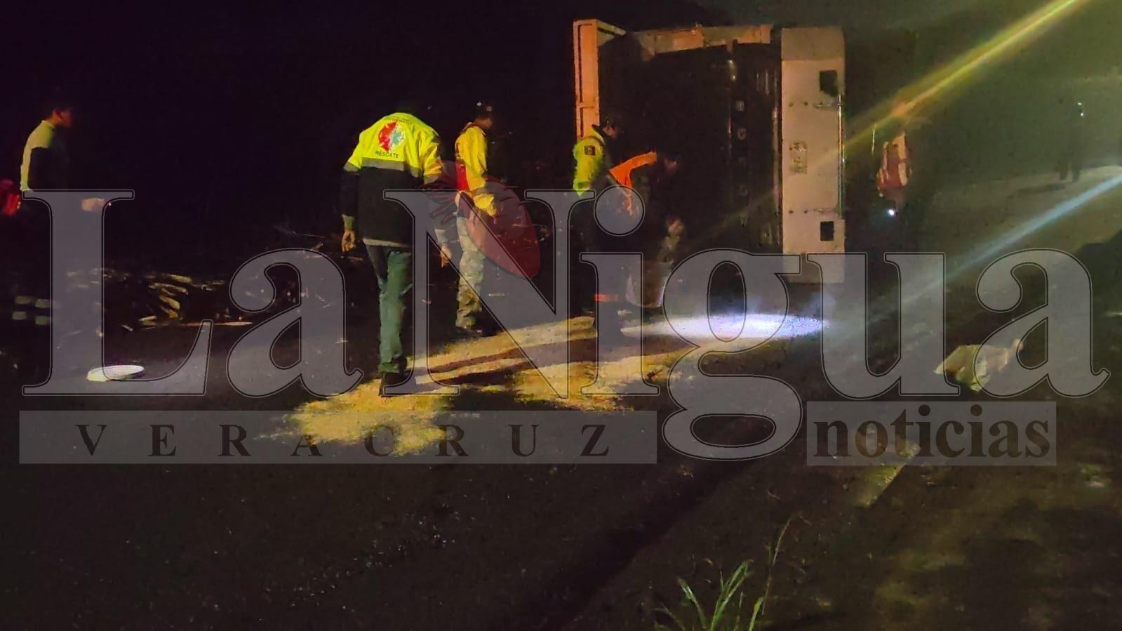 Córdoba, Ver.— La tarde de este día se registró la volcadura de un camión cañero sobre la Calzada El Barrial, a la altura del CECADIS, lo que dejó como saldo una persona lesionada.