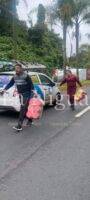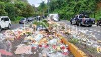 El cargamento que eran decenas de botes de leche al parecer de la marca «Nido» quedó tirado en el asfalto por lo que de manera inmediata empezó la rapiña del producto.