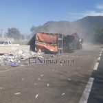 Al llegar a la curva del kilómetro 263, se presume que debido al peso el conductor perdió el control, se estrelló contra el muro central y volcó. Debido a la fricción comenzó a incendiarse, así mismo la vialidad se vio afectada en ambos sentidos.