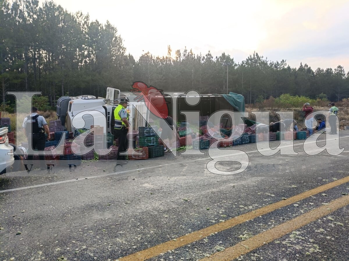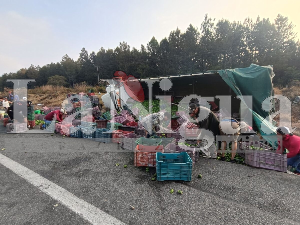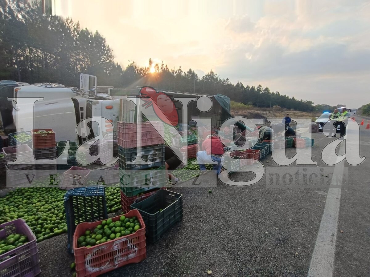 La unidad que provenía de la zona de la región de La Chontalpa en el estado de Tabasco, venía cargado de cajas de limones, parte de los cítricos quedó sobre la cinta de rodamiento.