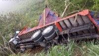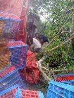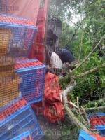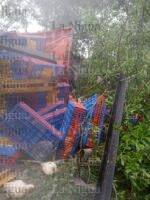 El operador de un camión cargado de pollos terminó prensado luego de volcar sobre la carretera federal Alazán – Canoas.