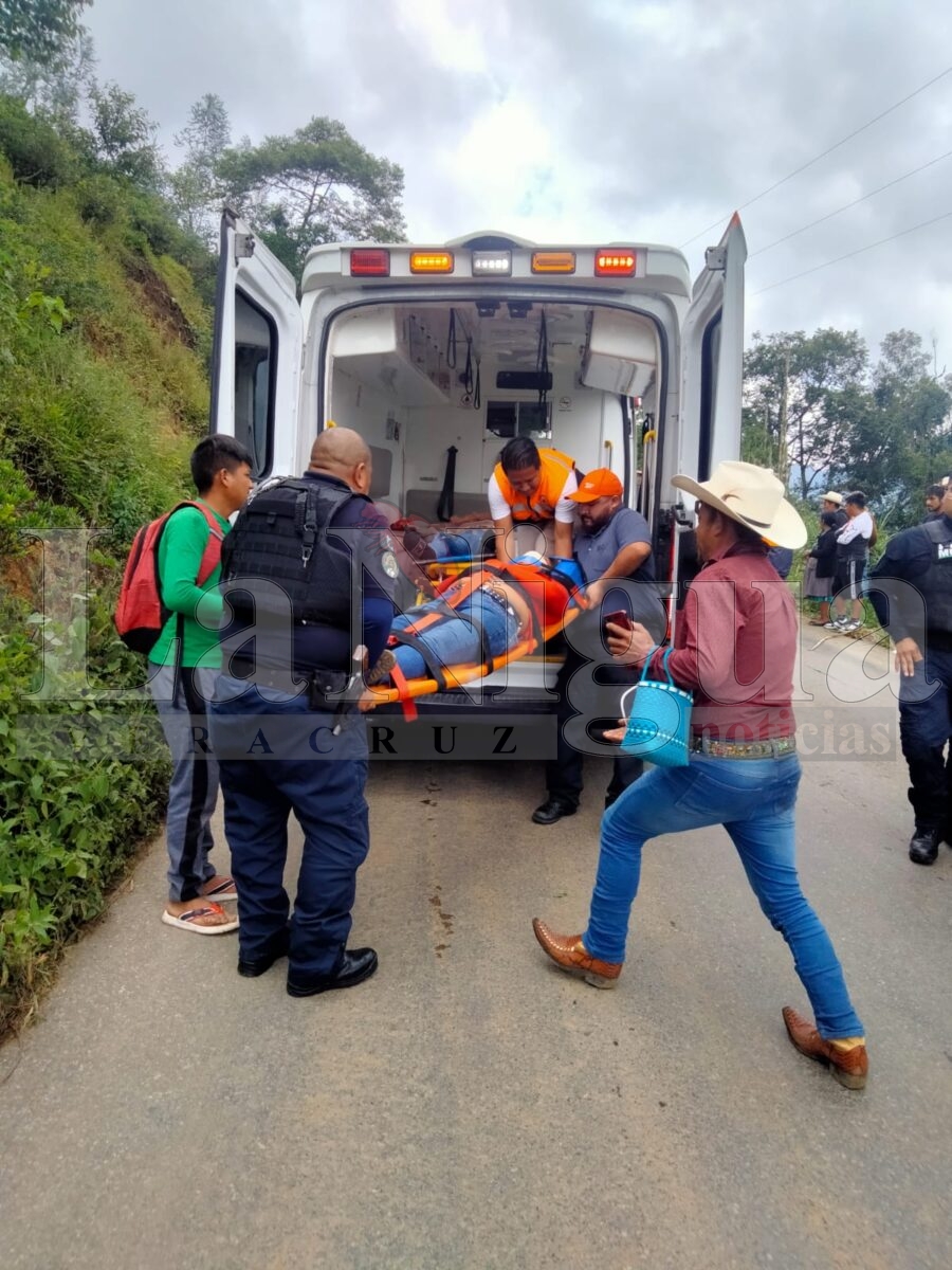 La Perla, Ver.- Tres personas lesionadas, una de ellas menor de edad, daños materiales, así como la movilización de cuerpos policiales, de rescate y de lugareños, así como el cierre total de la circulación vehicular de la carretera La Yerbabuena-Los Fresnos, en la zona serrana del municipio de La Perla, fue el saldo que dejó el choque y volcadura de una camioneta particular en color rojo a causa de una aparente falla mecánica.