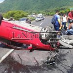 Se presume que al ingresar a la curva del kilómetro 263, supuestamente fue impactado por un Tráiler, por lo que perdió el control de su unidad, choco contra el muro de contención y termino volcado. Luego del incidente el conductor resultó con lesiones en diferentes partes del cuerpo, mientras que el presunto responsable escapó del lugar.