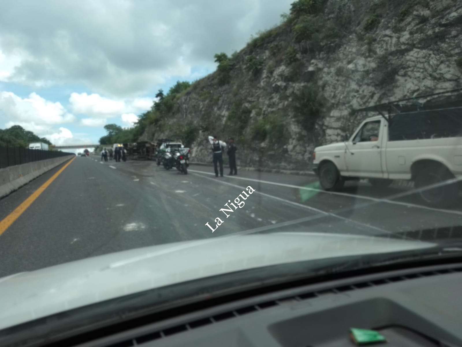 Tras la maniobra el tráiler quedó volcado a un costado de la cinta asfáltica, afortunadamente no se registraron lesionados, solo daños materiales de consideración.