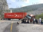Ciudad Victoria, Tamaulipas.-Derivado de la volcadura de un tráiler de doble remolque, la circulación fue cerrada en ambos carriles de la Carretera Estatal 126 Rumbo Nuevo en el tramo Victoria-San Antonio.