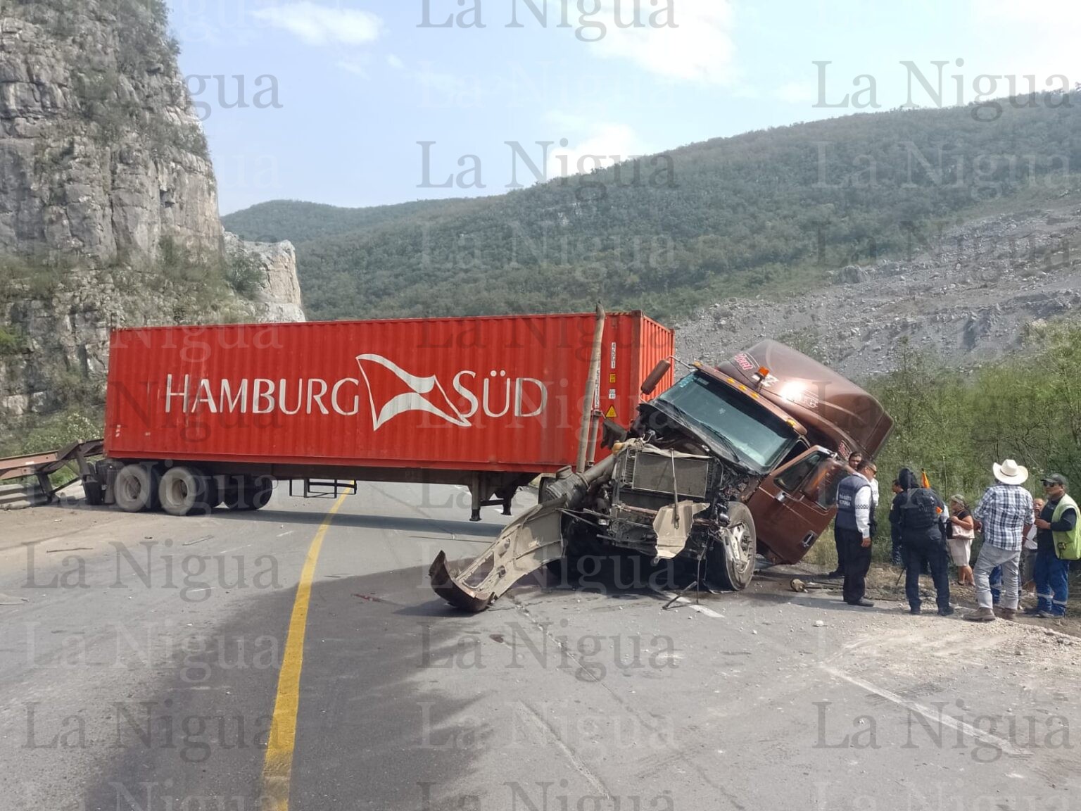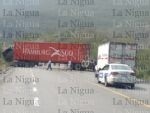 La cabina del tráiler estaba chocada, mientras que uno de los contenedores cayó en un barranco y otro quedó sobre la cinta asfáltica, obstruyendo la circulación.