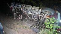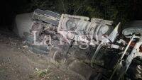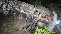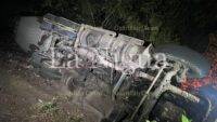 De acuerdo al operador, al desplazarse con dirección a Tantoyuca, perdió el control de la pesada unidad en la curva, lo que provocó que volcara sobre su costado izquierdo.