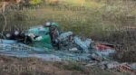 Durante esta tarde de jueves un trailer cargado de montenes y galvatejas se volcó en el puente libramiento 3 en Acayucan, Veracruz.