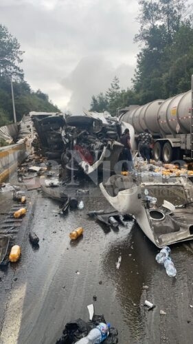 Maltrata. Un trailer qué transportaba jugos terminó desbaratado y volcado esto sobre la autopista Puebla-Orizaba dirección Veracruz, acudiendo los cuerpos de emergencia y seguridad para atender la situación.