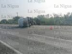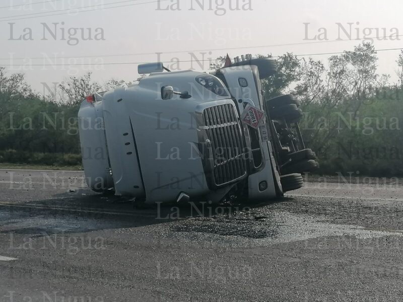 La volcadura se suscitó sobre el tramo Victoria-Matamoros a la altura del municipio de Cruillas.