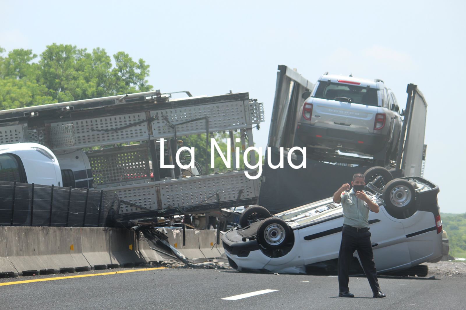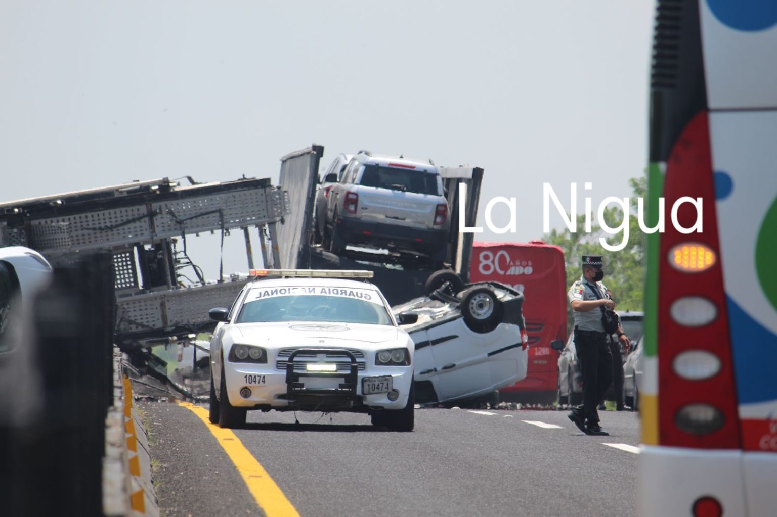 Xalapa, Ver.- Esta mañana de martes se suscitó un accidente en donde el conductor de una Madrina se volcó a la altura de la caseta de Plan de río, en donde se salieron las camionetas que transportaba.