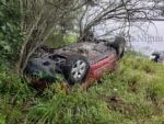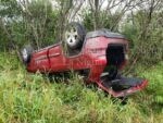 Viajaban a bordo de una camioneta Jeep Grand Cherokee guinda la cual quedó entre el monte con las llantas al cielo luego de que el conductor perdiera el control al volante.