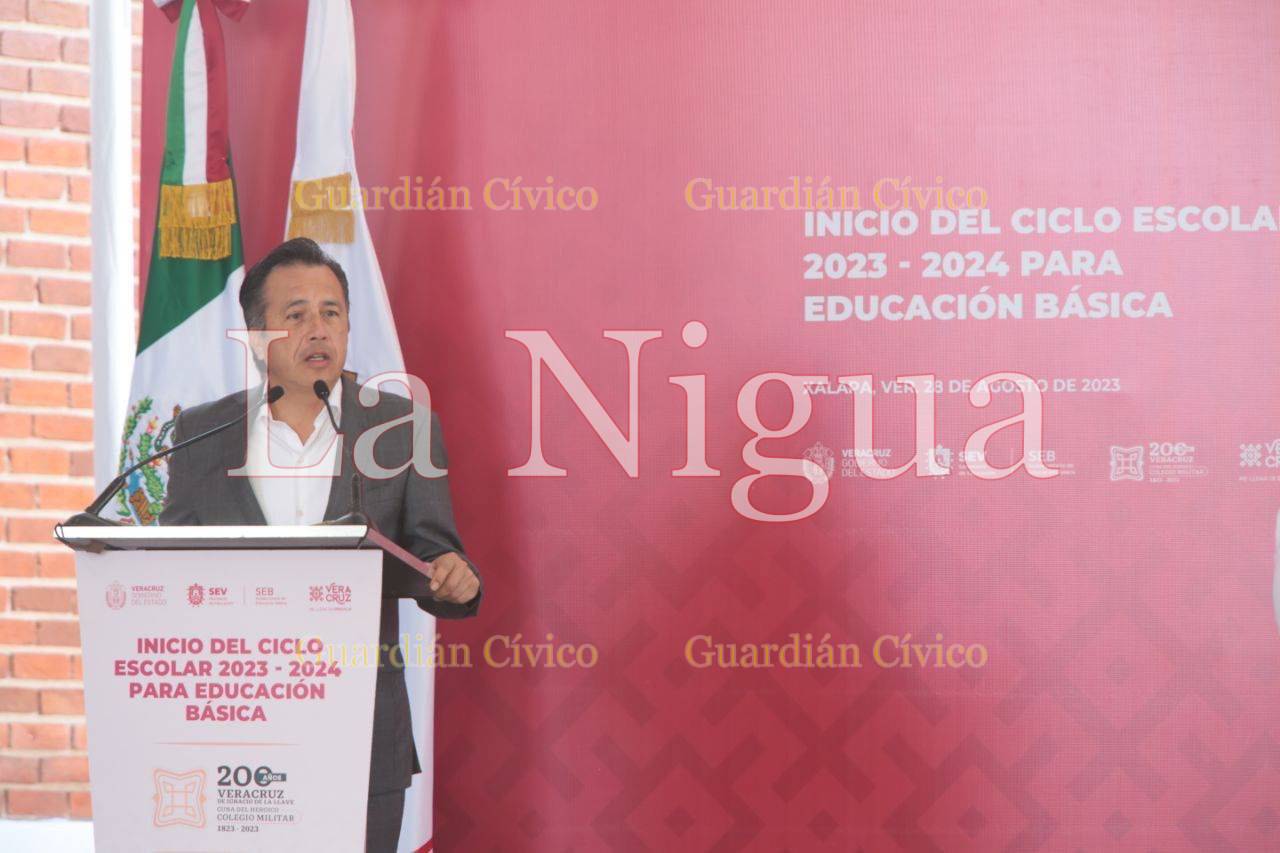 Con un entusiasta y motivador discurso, el mandatario estatal se dirigió a la comunidad educativa de la Escuela Primaria “Adalberto Tejeda” de esta capital y subrayó la importancia del modelo educativo mexicano que a partir de esta fecha se implementará en los salones de clases, junto con los libros de texto gratuitos.