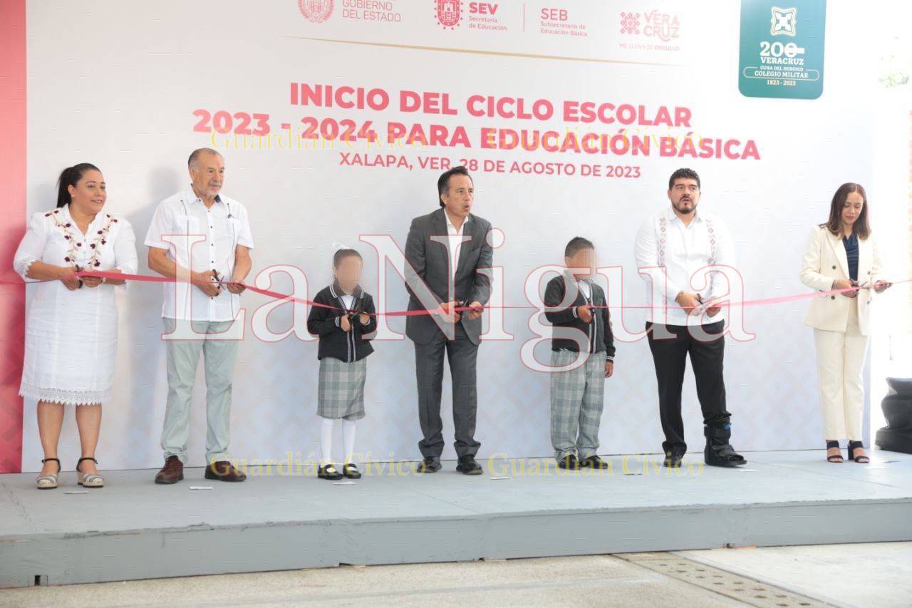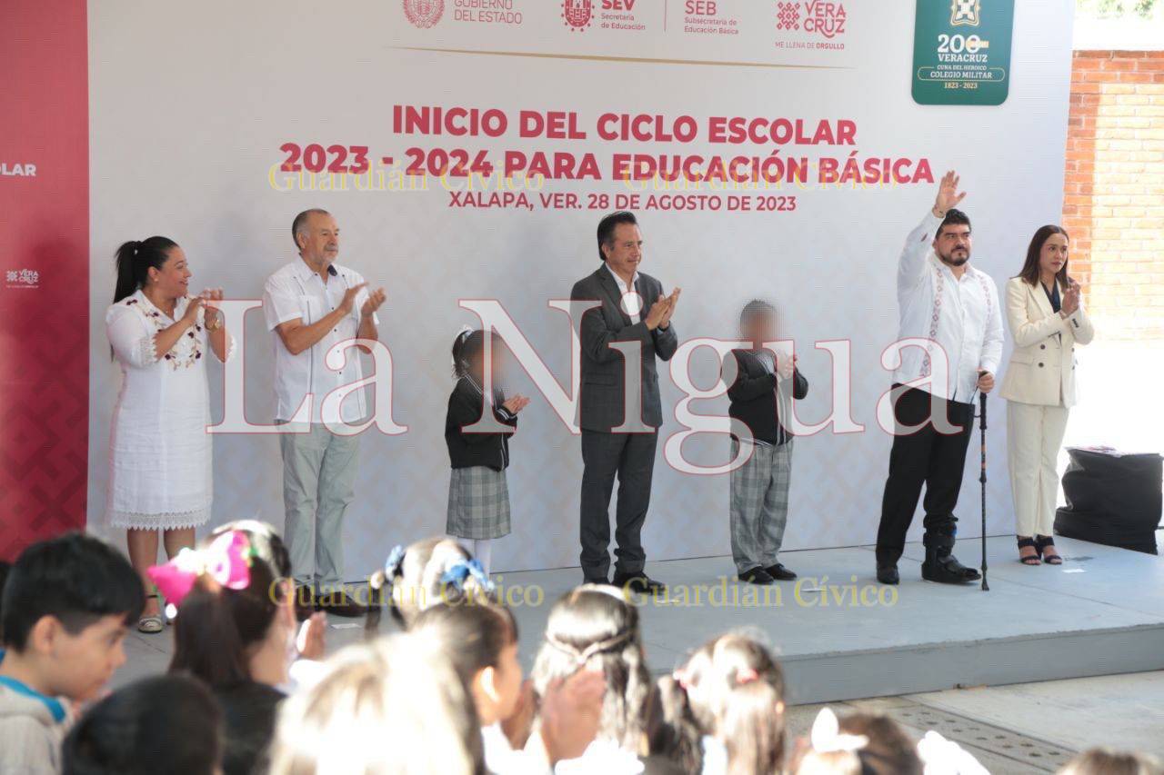 Xalapa, Ver., 28 de agosto de 2023.- El gobernador Cuitláhuac García Jiménez inauguró el Ciclo Escolar 2023-2024 para Educación Básica, en compañía del secretario de Educación, Zenyazen Escobar García, dando la bienvenida a un millón 359 mil 21 alumnas y alumnos que acuden a 20 mil 935 escuelas y son atendidos por 88 mil 458 docentes.