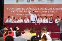 Así, se congratuló por la asistencia y participación que han tenido durante estas jornadas cuyo objetivo es el de aclarar dudas e inquietudes sobre los nuevos libros de texto gratuitos y acabar con el descrédito que ha generado al trabajo de las y los maestros que intervinieron en su creación, mediante diferentes foros, como los que se hicieron para modificar la Ley General de Educación o para la creación del nuevo modelo educativo.