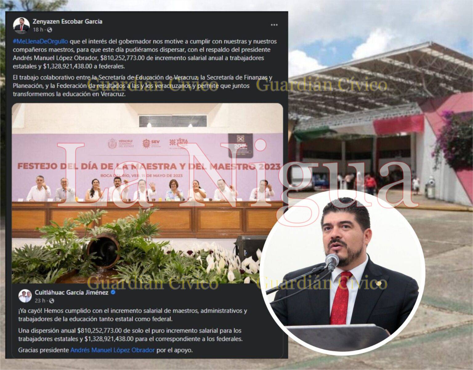 Del mismo modo, el titular del ramo educativo en la entidad compartió la publicación del Ejecutivo en sus redes sociales y precisó en un mensaje propio que esta respuesta es resultado del trabajo colaborativo entre la Secretaría de Educación de Veracruz (SEV) y la Secretaría de Finanzas y Planeación con las autoridades federales.