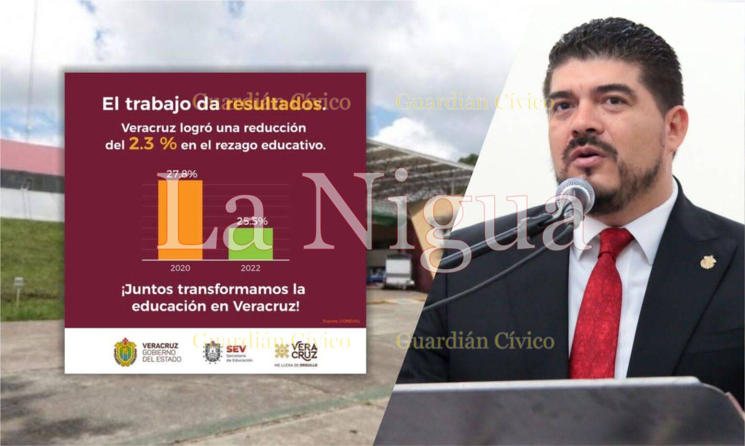 Xalapa, Ver., 20 de agosto de 2023.- El secretario de Educación, Zenyazen Escobar García, dio a conocer que el estado de Veracruz logró en dos años reducir el rezago educativo en dos puntos porcentuales, pasando de 27.8 a 25.5 por ciento.