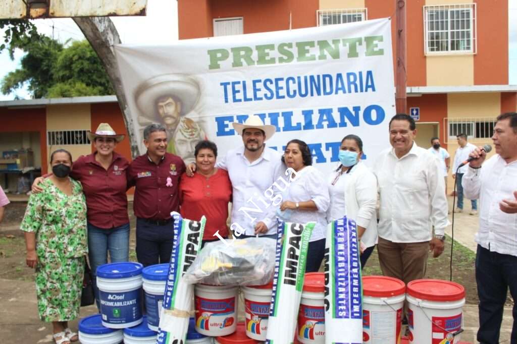 Durante su recorrido por esta región, aprovechó para hacer entrega de la obra de rehabilitación del edificio y obra exterior en la Telesecundaria “Lázaro Cárdenas del Río”, donde se invirtieron un total de 767 mil 105.52 pesos, beneficiando directamente a los 43 alumnos matriculados para este ciclo escolar 2022-2023.