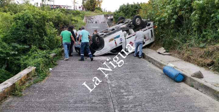 Debido a una aparatosa volcadura sobre la calle Primera de Lectores de la Colonia Margarita Maza de Juárez, donde un conductor al perder el control de su unidad, ocasionaron que varios cilindros del GAS LP, salieran de la unidad y cayeran sobre una pendiente ante el temor de los habitantes de este núcleo poblacional.